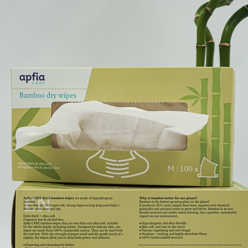 Șervețelele uscate Apfia Care sunt realizate din fibră de bambus 100%, fiind o alternativă naturală, hipoalergenică și ultra-moale pentru îngrijirea zilnică a bebelușului. Se pot folosi uscate sau umezite cu apă, oferind o curățare blândă, fără substanțe chimice sau parfum.